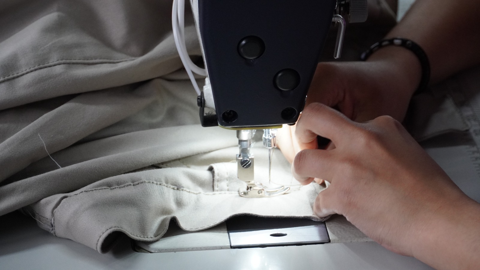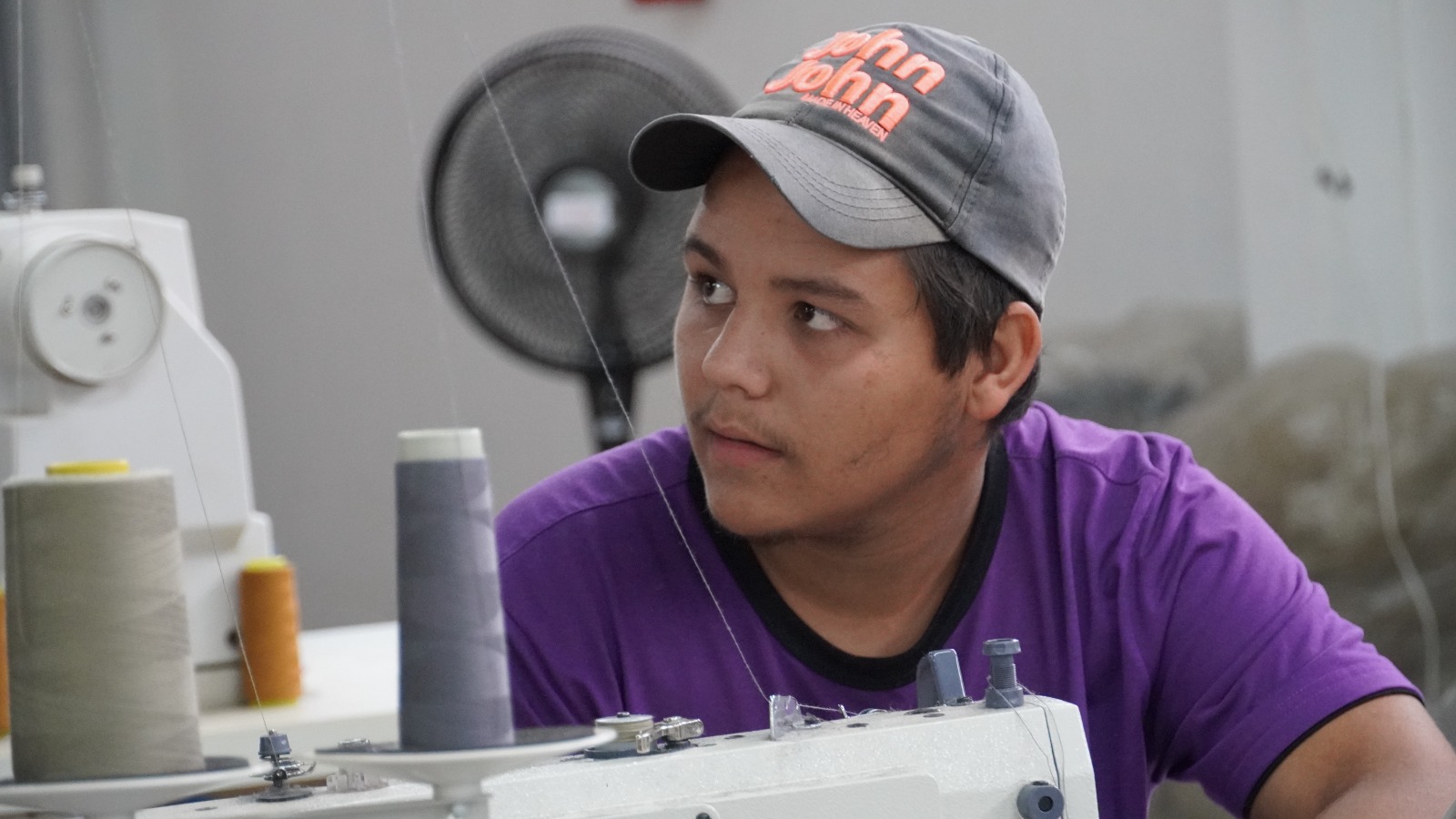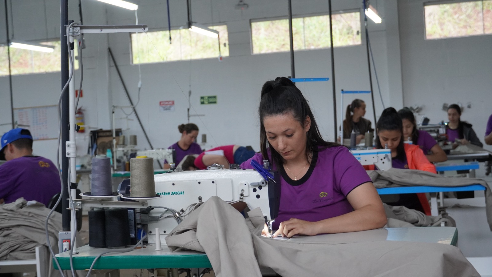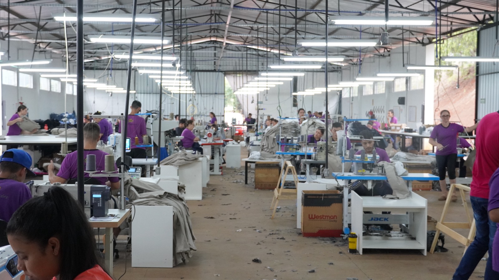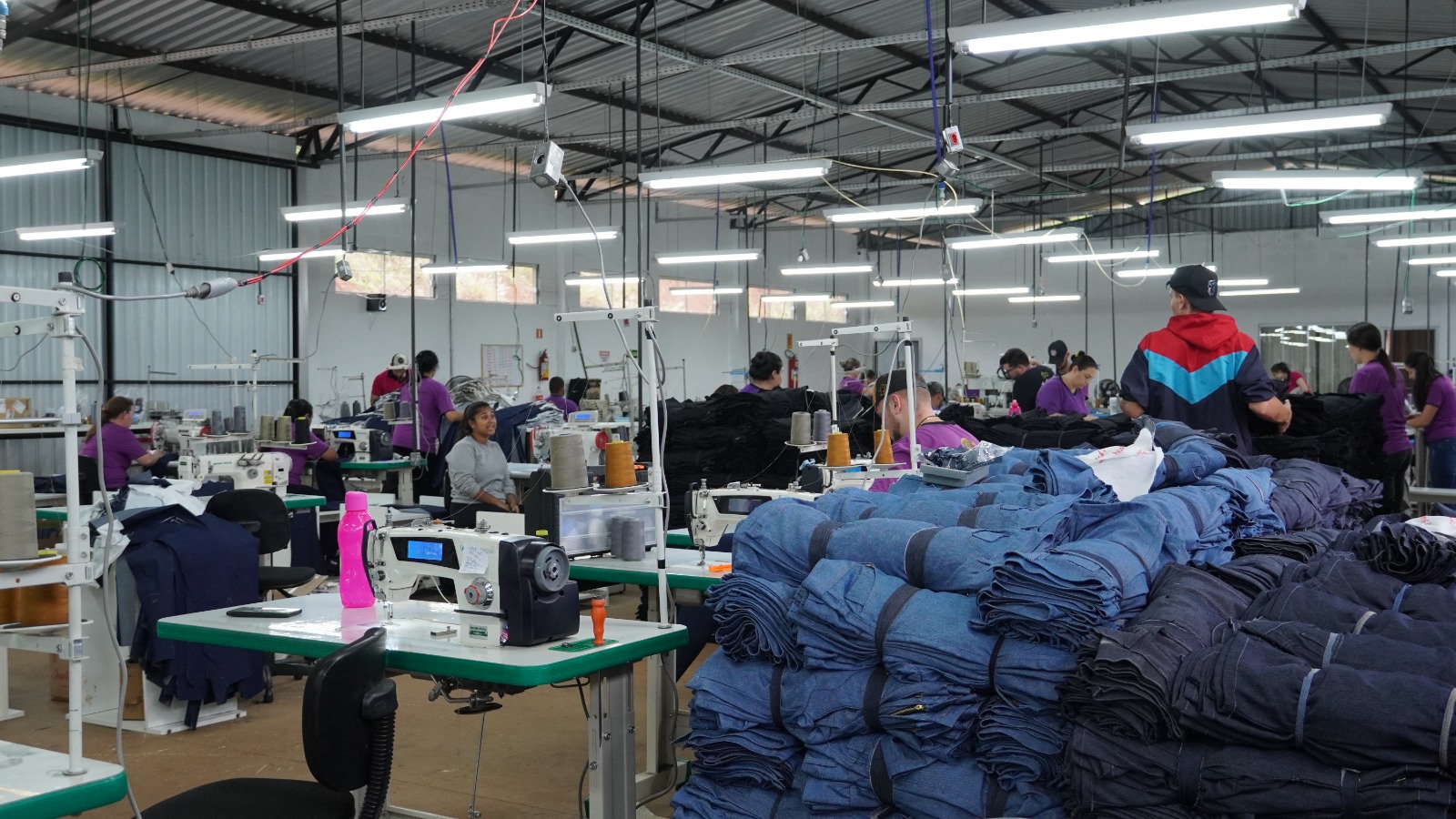 Assim como Daniele, Carlos Fabrício Denis também se concentra fazendo centenas de barras de calças. Mas ele são dois dos 74 colaboradores empregados pela Lês Confecção, uma facção de jeans. A produção de 2,5 mil peças por dia é entregue à uma empresa de São Paulo.