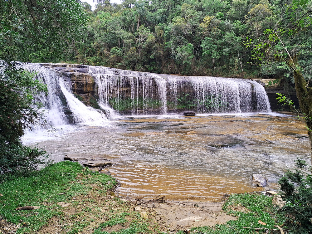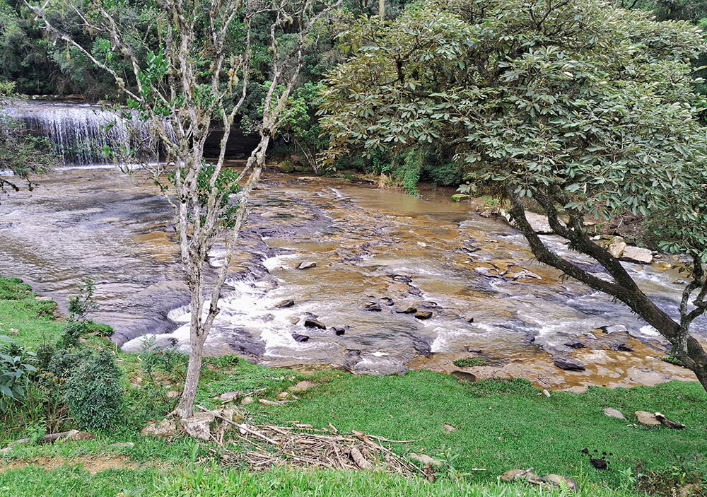 Para vocês terem ideia, só em Inácio me apontaram que há pelo menos 10 cachoeiras que podem ser visitadas tranquilamente. Isso sem contar outras que ficam mais escondidas dentro de fazendas. Claro, como um típico meninão nascido e criado na cidade grande, precisava visitar pelo menos uma delas. A cachoeira escolhida foi a Itapará. Distante há menos 20 km do centro de Inácio Martins, a cachoeira é um daqueles locais que você chega e já quer entrar na água. Dá até para entrar atrás da queda d’água. A mim, por estar um pouco frio no dia, só me restou molhar as canelas brancas.