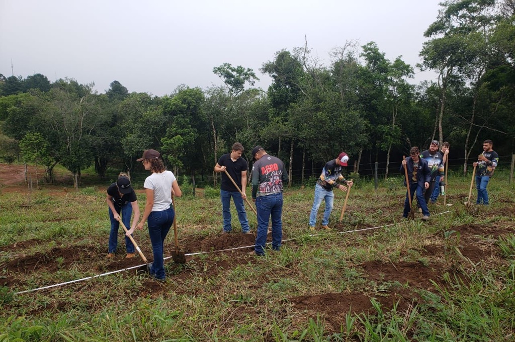 Com atividades sobre Fruticultura, os alunos prepararam o solo e plantaram as mudas no Centro de Ciências Agrárias (CCA) da Faculdade Guarapuava