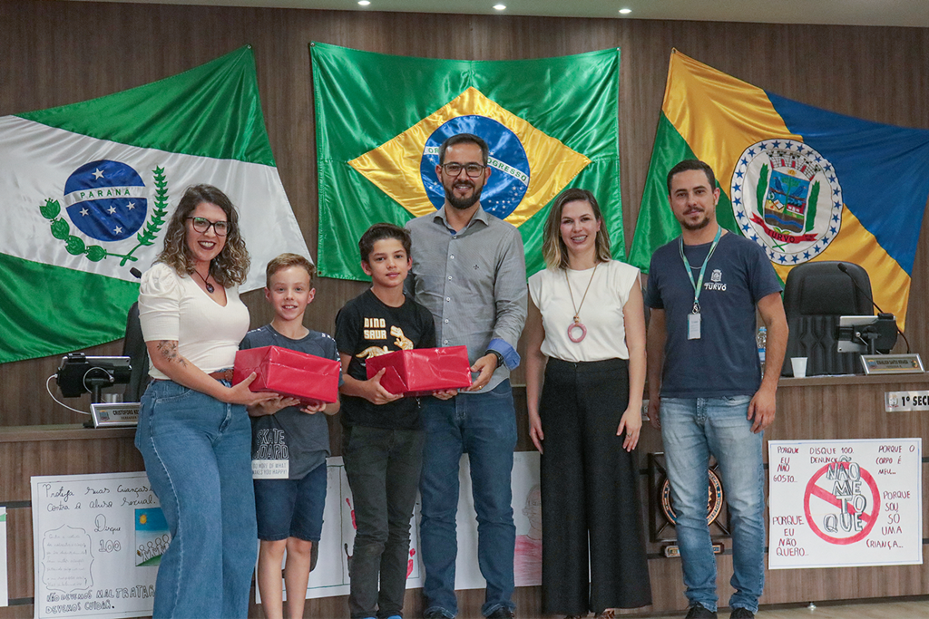 Os alunos de Turvo vencedores do Concurso Araceli Cabrera Sánchez Crespo receberam a premiação da Prefeitura Municipal. A Secretária Municipal de Família e Desenvolvimento Social promoveu a cerimônia na Câmara Municipal dos Vereadores, com cerca de 430 estudantes do Ensino Fundamental e Médio.