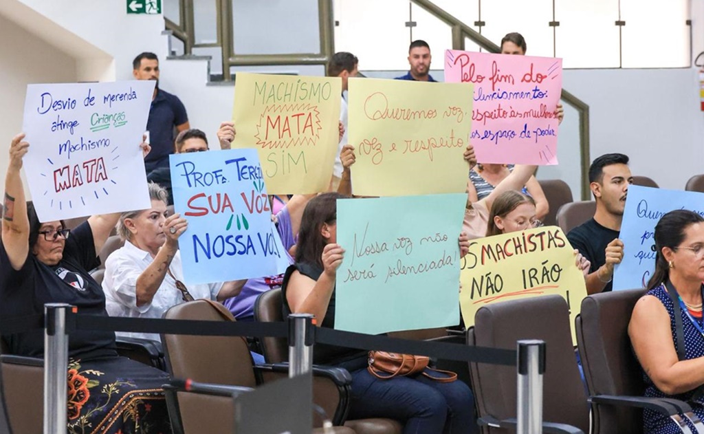 Conforme o transcorrer, o encaminhamento ocorreu após uma fala de Terezinha em sessão anterior, quando afirmou que “homem mata”. Segundo a vereadora, a declaração ocorreu de forma generalizada, dentro do debate sobre violência contra a mulher, e não direcionada a uma pessoa específica. Entre os cartazes exibidos no plenário estavam frases como “Machismo mata”, “Queremos voz e respeito” e “Nossa voz não será silenciada”.