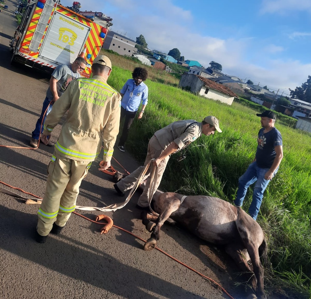 Cavalo cai em bueiro e é resgatado pelos bombeiros em Guarapuava