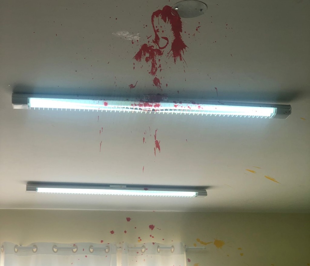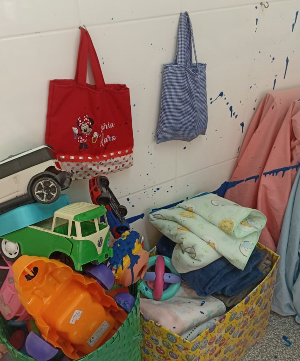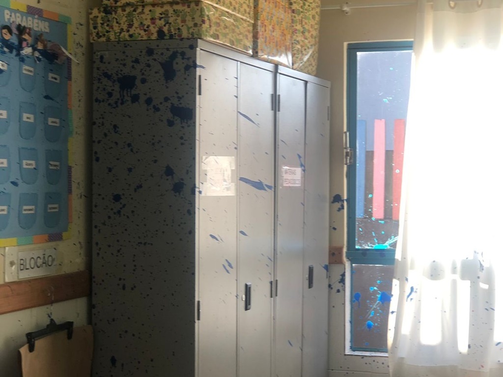 A direção do Cmei informou que os vândalos estragaram duas salas e banheiros. As salas tinham cacos de vidro e materiais escolares espalhados pelo chão. As paredes ficaram ‘pintadas’ por tinta guache. No banheiro, os vasos sanitários também acabaram tingidos com tinta guache, assim como as lâmpadas das salas. Os materiais pedagógicos preparados pelas professoras também foram estragados.