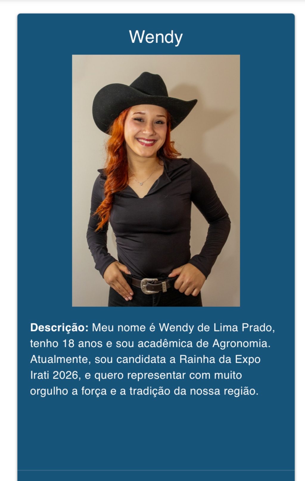 A Expo Irati 2026 já tem definidas as 13 candidatas que disputam os títulos de Rainha e Princesas da feira. A escolha ocorre no dia 9 de abril, às 19h, no palco principal, durante a programação do evento, que segue até o dia 12, em Irati.