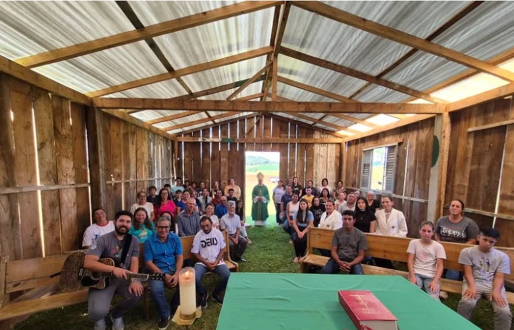 A celebração ocorreu na capela da Comunidade Nossa Senhora Aparecida, destruída pelo tornado de novembro de 2025 e reconstruída de forma provisória pelos fiéis.