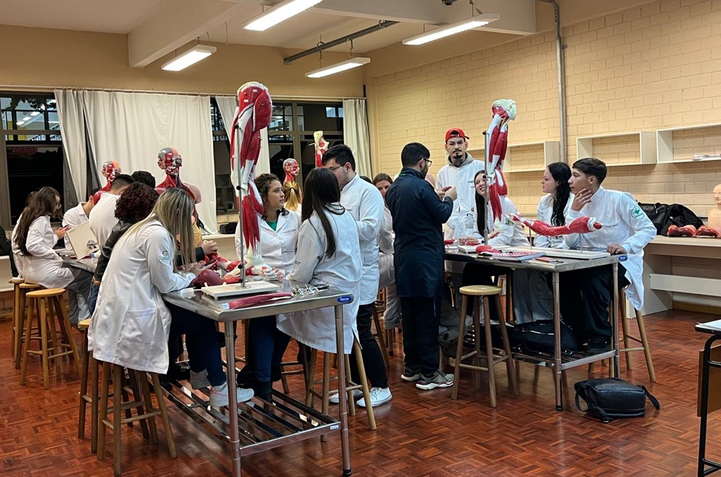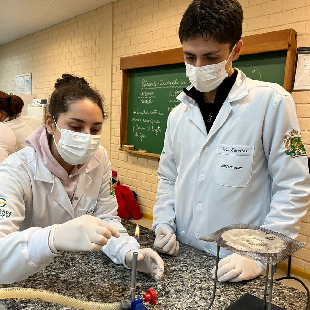 Durante as aulas práticas, os estudantes aprendem conteúdos essenciais da profissão. Entre eles, a higienização correta das mãos e uso de EPIs, técnicas básicas de cuidado, verificação de sinais vitais, noções de assepsia e antissepsia e introdução ao manuseio de materiais hospitalares, entre outras atividades fundamentais para a formação em Enfermagem.