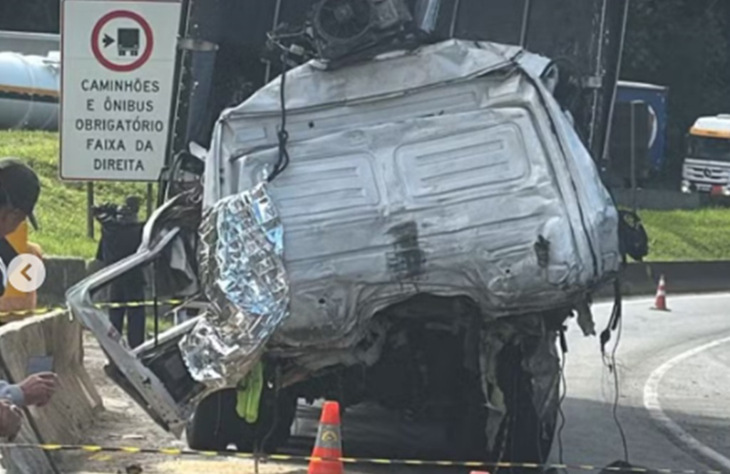 No entanto, essas duas faixas estão interditadas. Dessa forma, segundo a PRF, o motorista retornou para a pista liberada e bateu contra a Van, arremessando esse veículo contra a mureta de proteção da rodovia. Em seguida, o caminhão atingiu a carreta que estava na frente. Com o impacto da batida, a cabine se desprendeu do chassi e ficou presa na traseira da carreta, enquanto o baú foi arremessado para a faixa direita. A van e o caminhão pegaram fogo logo após as colisões.