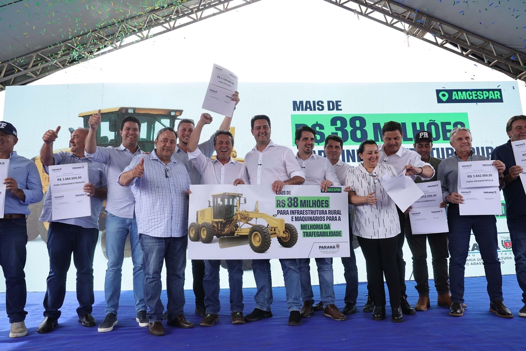 As prefeituras que compõem a Associação dos Municípios do Centro-Sul do Paraná (Amcespar) vão receber R$ 38 milhões do Governo do Estado para a compra de caminhões, retroescavadeiras, motoniveladoras, pás carregadeiras e outros equipamentos. As máquinas servirão para fazer a manutenção de estradas rurais e para apoiar diretamente a produção agrícola.