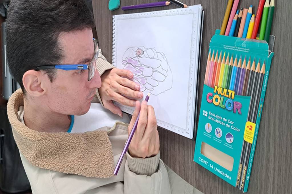A exposição inclui fotografias com texturas e escritas em braille, assim vários alunos da Apadevi com baixa visão e com necessidades visuais acabaram envolvidos pela arte. Giovane faz parte da Apadevi e pôde contemplar a manifestação artística por completo.