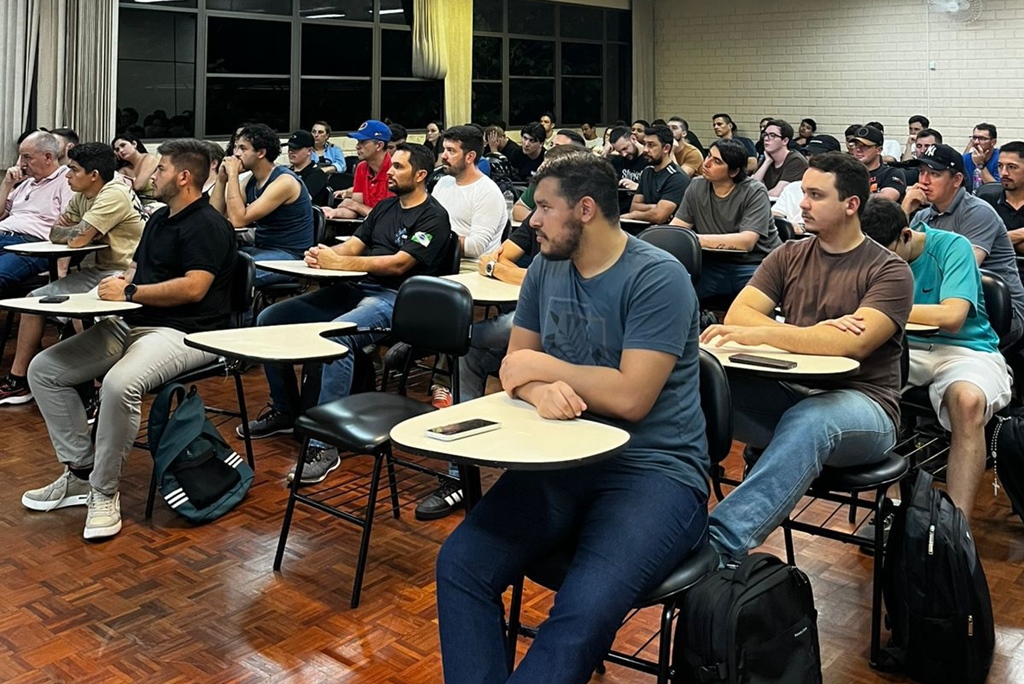 A programação teve início na terça (19), com a aula inaugural do curso de Agronomia, dividida em dois momentos. Na primeira etapa, o engenheiro agrônomo Carlos Alberto Taddei, representante da empresa Magnojet, ministrou a palestra “Tecnologia de Aplicação com Ênfase em Pontas”. Ele abordou a importância da precisão na aplicação de insumos agrícolas e o impacto direto na produtividade no campo.