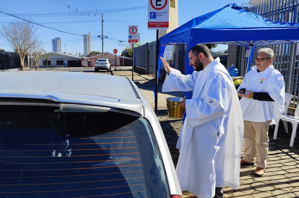 Bênção dos veículos (Foto: Reprodução/Paróquia Bom Jesus no Facebook)