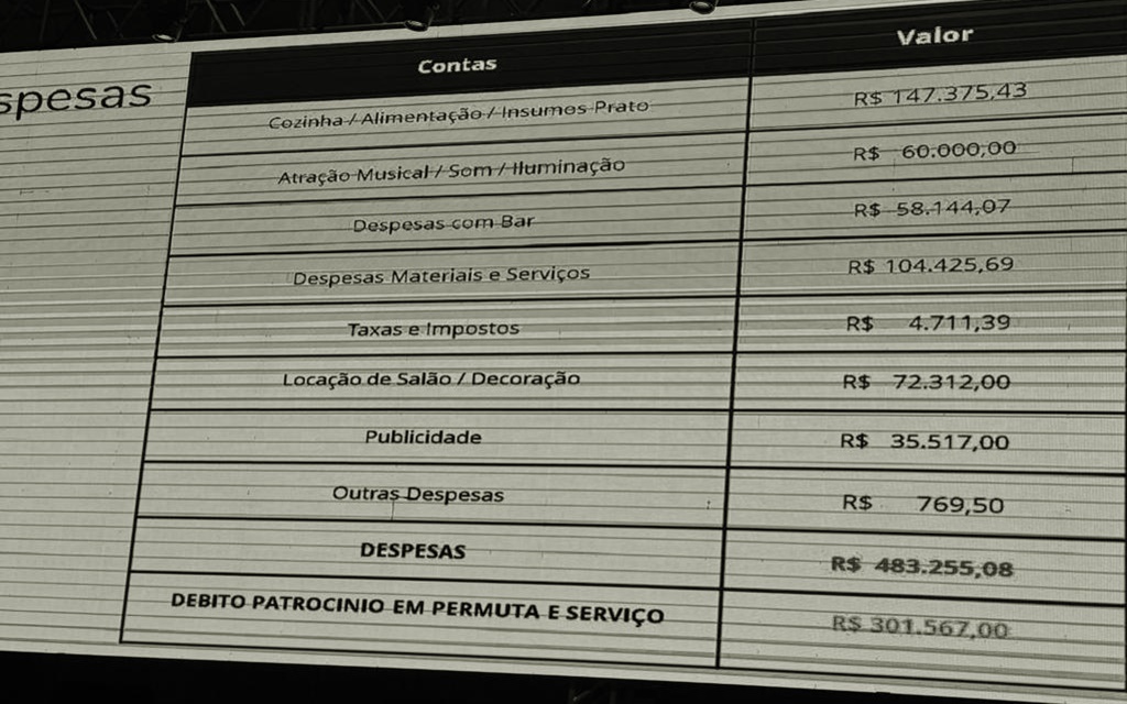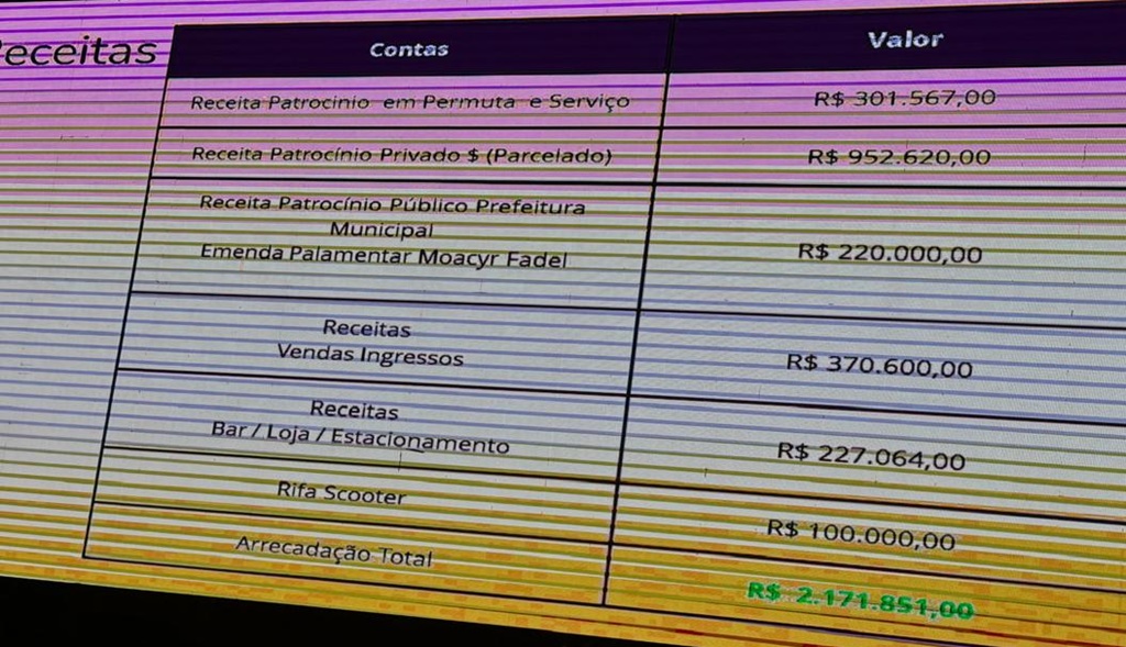 A grande notícia da noite, porém, não se tratou apenas a arrecadação, mas o planejamento financeiro que assegura a continuidade do evento. Eduardo Christi anunciou que o Sicredi assinou um contrato de naming rights com a festa para os próximos seis anos, totalizando R$ 1.270.000,00 para o período. Além disso, o patrocínio da edição de 2026 já está robusto, com contratos assinados durante o jantar que somam R$ 640 mil.