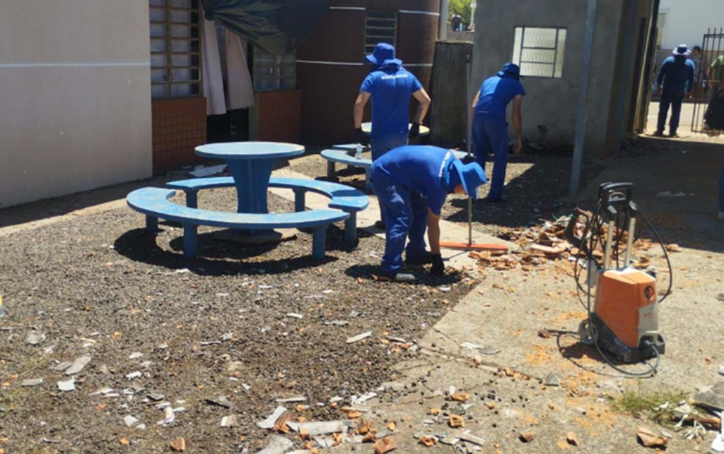Mão de obra carcerária trabalha na reconstrução de escolas e da Apae (Foto: Sesp)