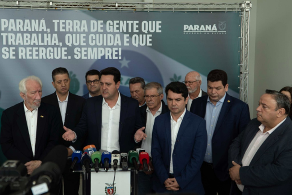 O Governador Carlos Massa Ratinho Junior anunciou, na tarde desta segunda (10), um  pacote de medidas emergenciais para a reconstrução de Rio Bonito do Iguaçu. O município encontra-se desvastado pelo tornado com ventos de 330km/h na sexta (7). De acordo com o Governo, as ações focam na rápida entrega de moradias para desabrigados, na recuperação da infraestrutura de ensino, incluindo escolas e Apaes, e em alívio financeiro para a população.