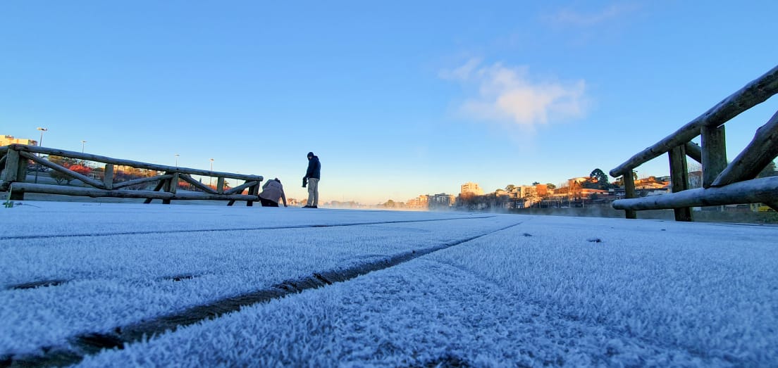 Guarapuava amanheceu congelada nesta quarta (30). Assim, no último dia de junho (30), os campos ficaram cobertos pelo gelo. Em muitas casas a água congelou dentro dos canos e as torneiras ‘secaram’.