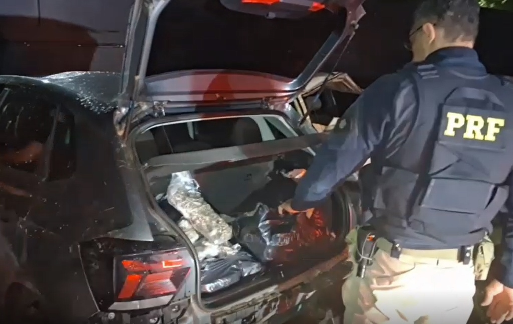 Droga estava no porta-malas do carro (Foto: Reprodução/Vídeo PRF)