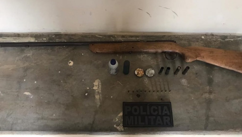 Segundo informações da Polícia Militar, chegando ao endereço do denunciado, a equipe encontrou uma espingarda calibre 32, sem marca e sem numeração. Além disso, os policiais localizaram também, 12 cartuchos usados e quatro intactos.