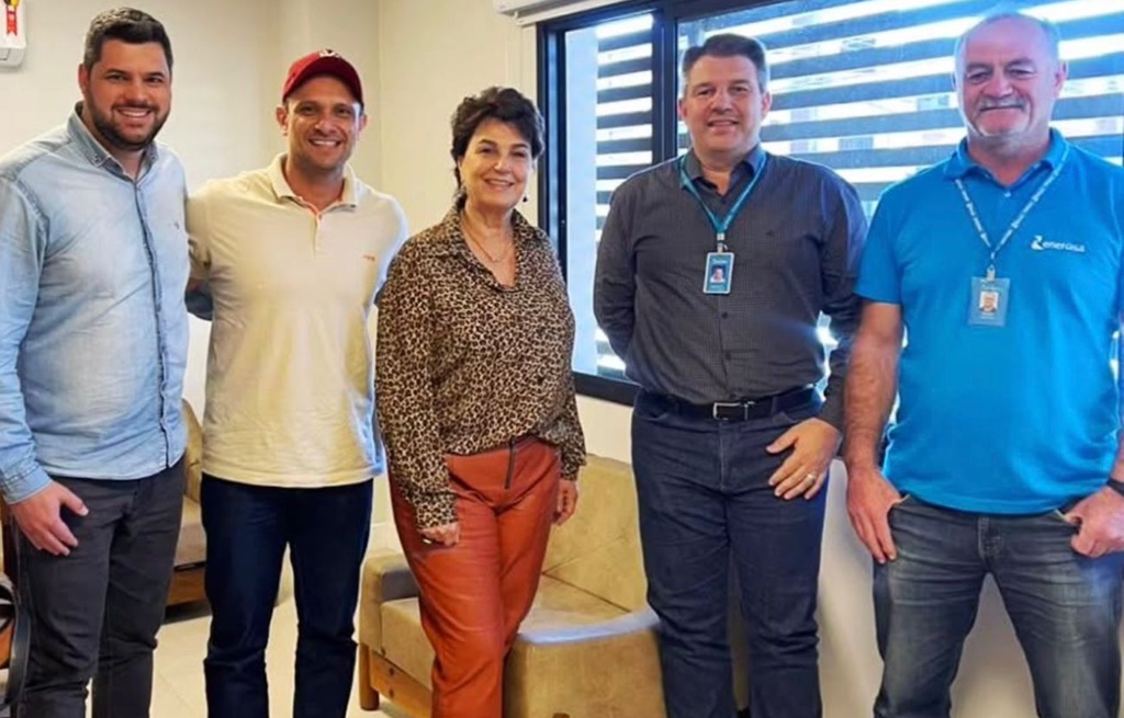 Marlon Malassa, André Koster, deputada Cristina Silvestri e osdiretores da Energisa, Dalessandro Mafei e Reinaldo Juliani (Foto: divulgação)