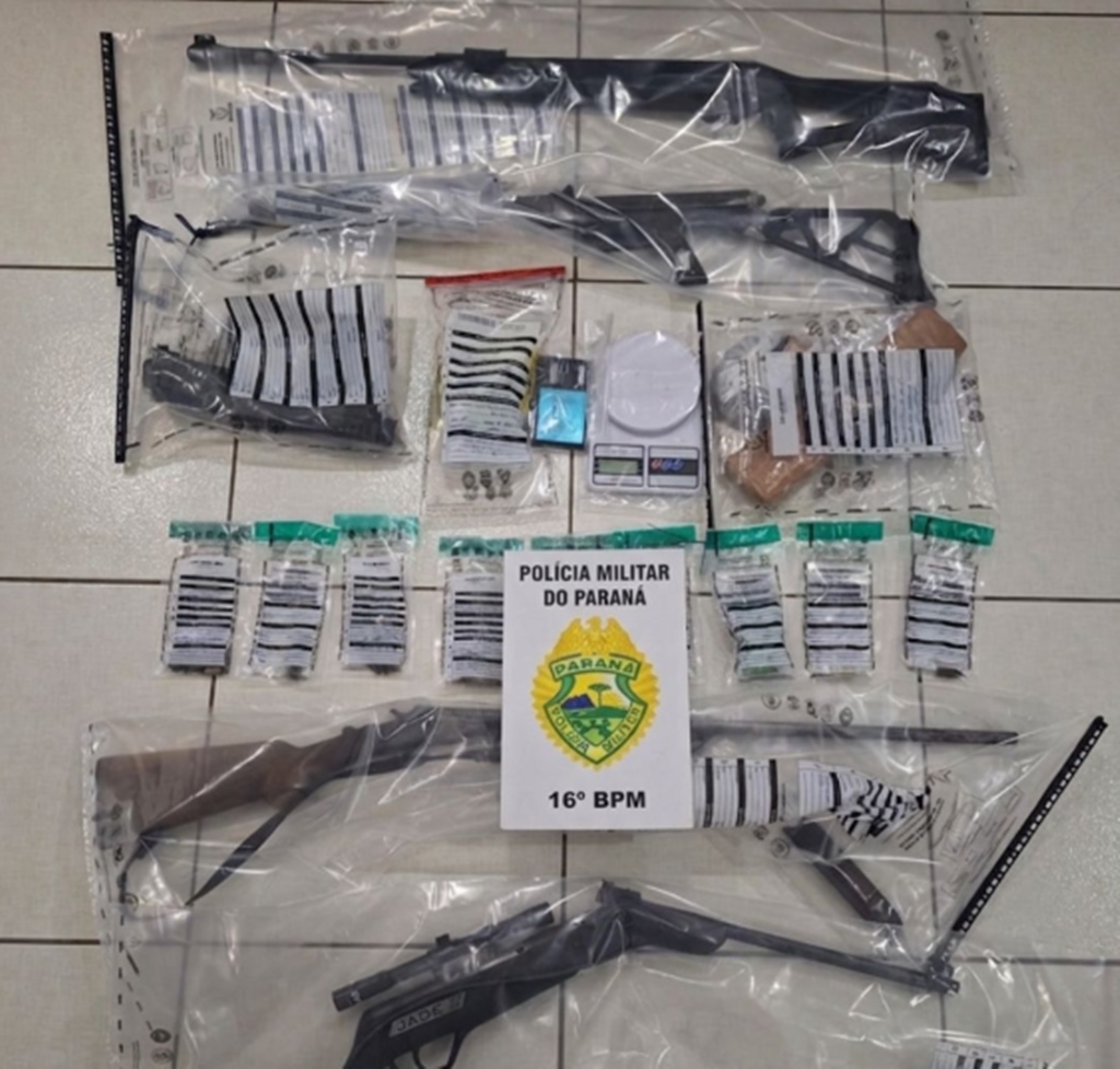 Um policial militar sofreu ferimentos leves durante a intervenção, mas recebeu atendimento médico. A PM apreendeu armas de fogo, munições, drogas e outros materiais ilícitos. A ocorrência foi periciada, e os procedimentos cabíveis foram adotados pelas autoridades competentes.