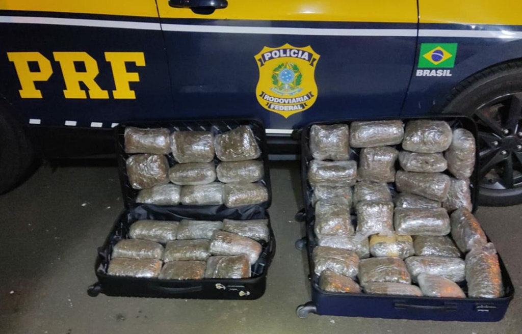 Durante a fiscalização, os policiais rodoviários encontraram duas malas com a droga no compartimento de bagagens. A passageira – dona das malas – informou à equipe policial que estava levando o skunk de Cascavel até São Paulo.