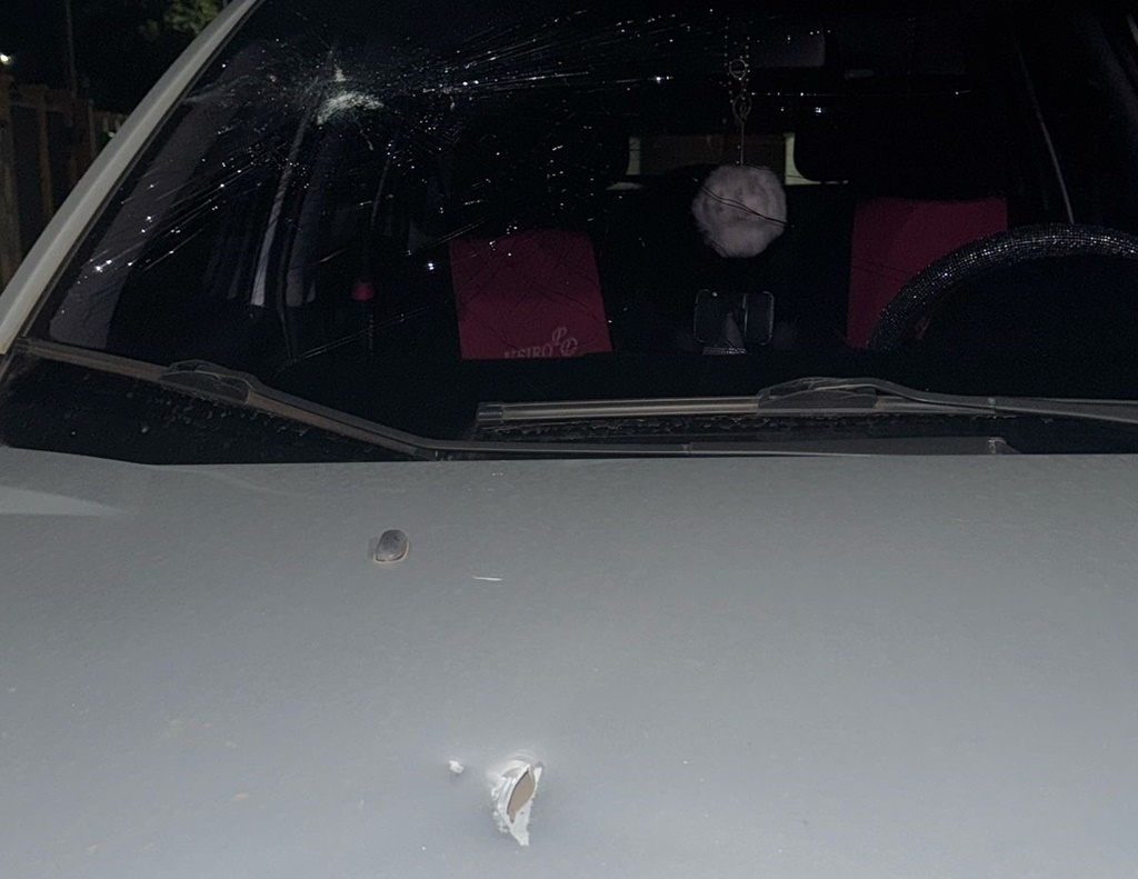A jovem de 24 anos relatou que estava dirigindo pela Avenida Moacir Julio Silvestre quando uma bala atingiu o capô e o para-brisa do carro