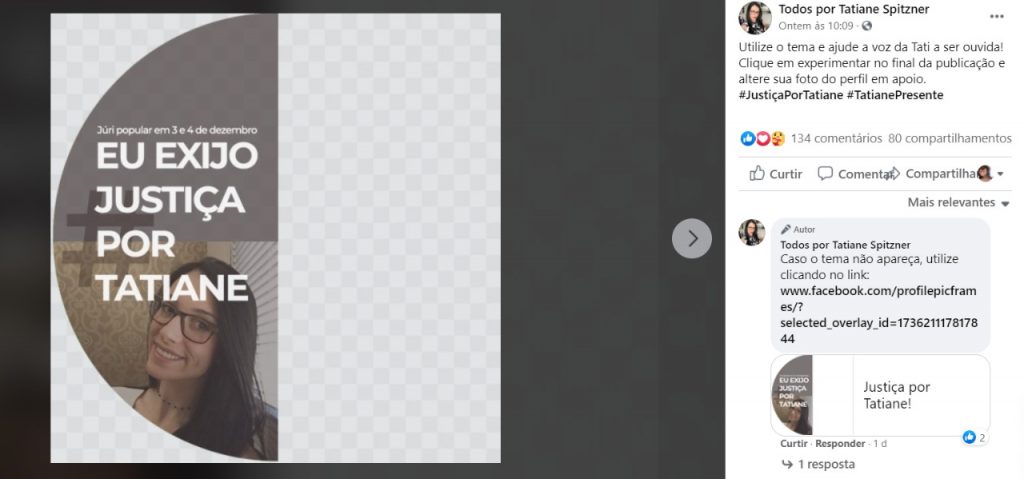 Fotos e textos pedindo a condenação de Manvailer têm pautado discussões desde o fim da semana passada. Filtros com a foto de Tatiane e a frase “Eu exijo justiça por Tatiane” circulam a todo momento.