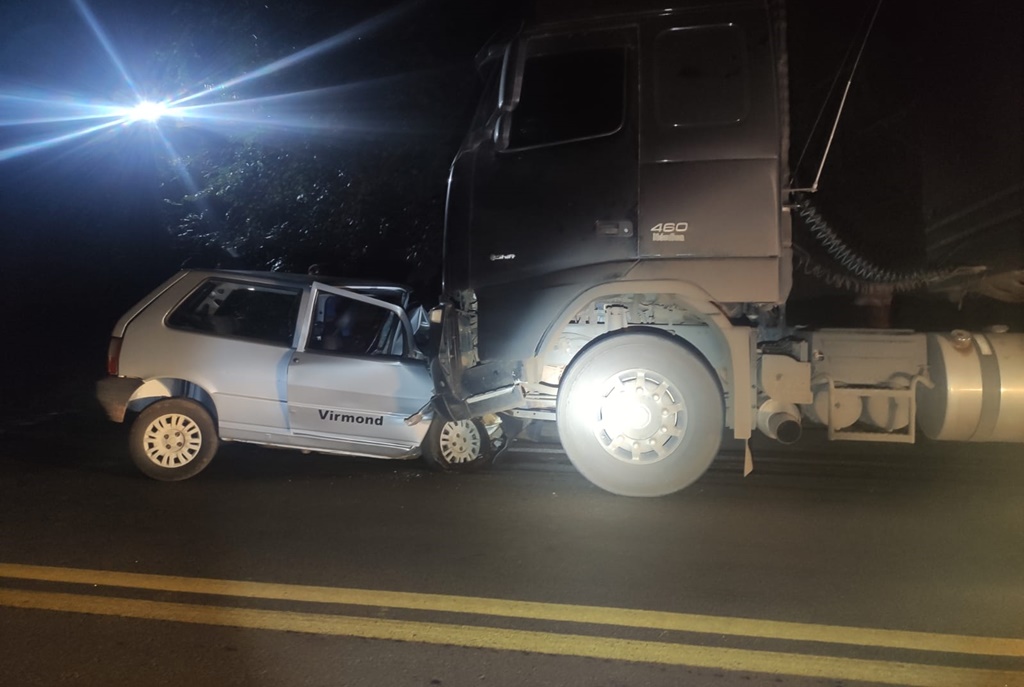A colisão frontal ocorreu por volta das 17h40, e envolveu o Fiat Uno furtado e um bitrem com placas de Guaíra, que seguia sentido Laranjeiras do Sul – Virmond. O carro trafegava no sentido contrário e o motorista perdeu o controle da direção e invadiu a pista contrária. Com a colisão, o motorista do carro sofreu ferimentos graves.