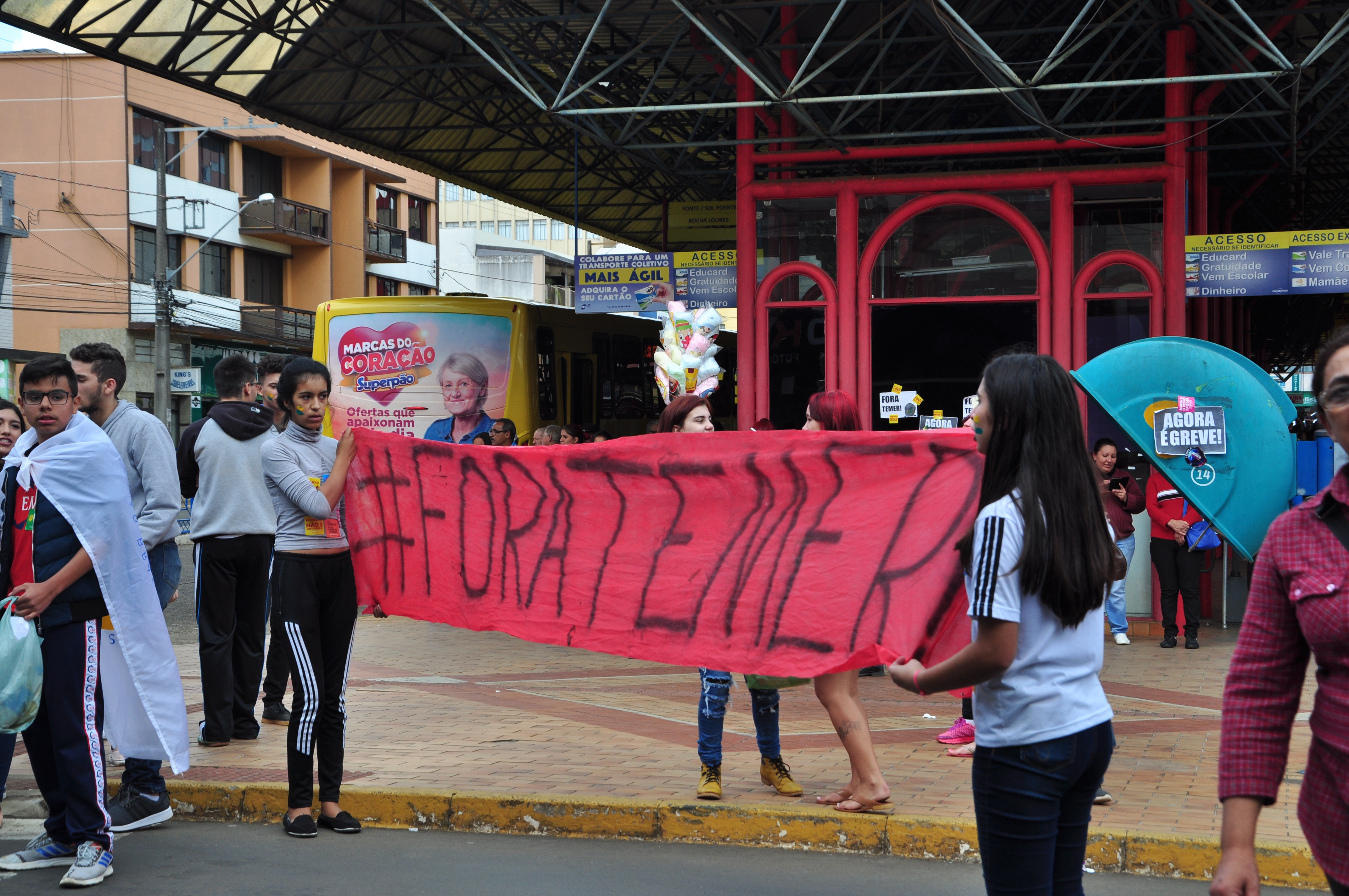 Antes mesmo do início da manifestação, outro movimento estava em andamento. Uma carreata organizada pelo Sindicato das Empresas de Transporte de Cargas (Sinditac) percorria uma das vias centrais da cidade, com ampla concentração de carros e caminhões. Simultaneamente, com o passar do movimento acrescentavam inserções de pedestres e comerciantes que estavam nas vias. Próximo ao terminal da fonte, jovens também reuniram-se e levaram a bandeira política ao protesto.