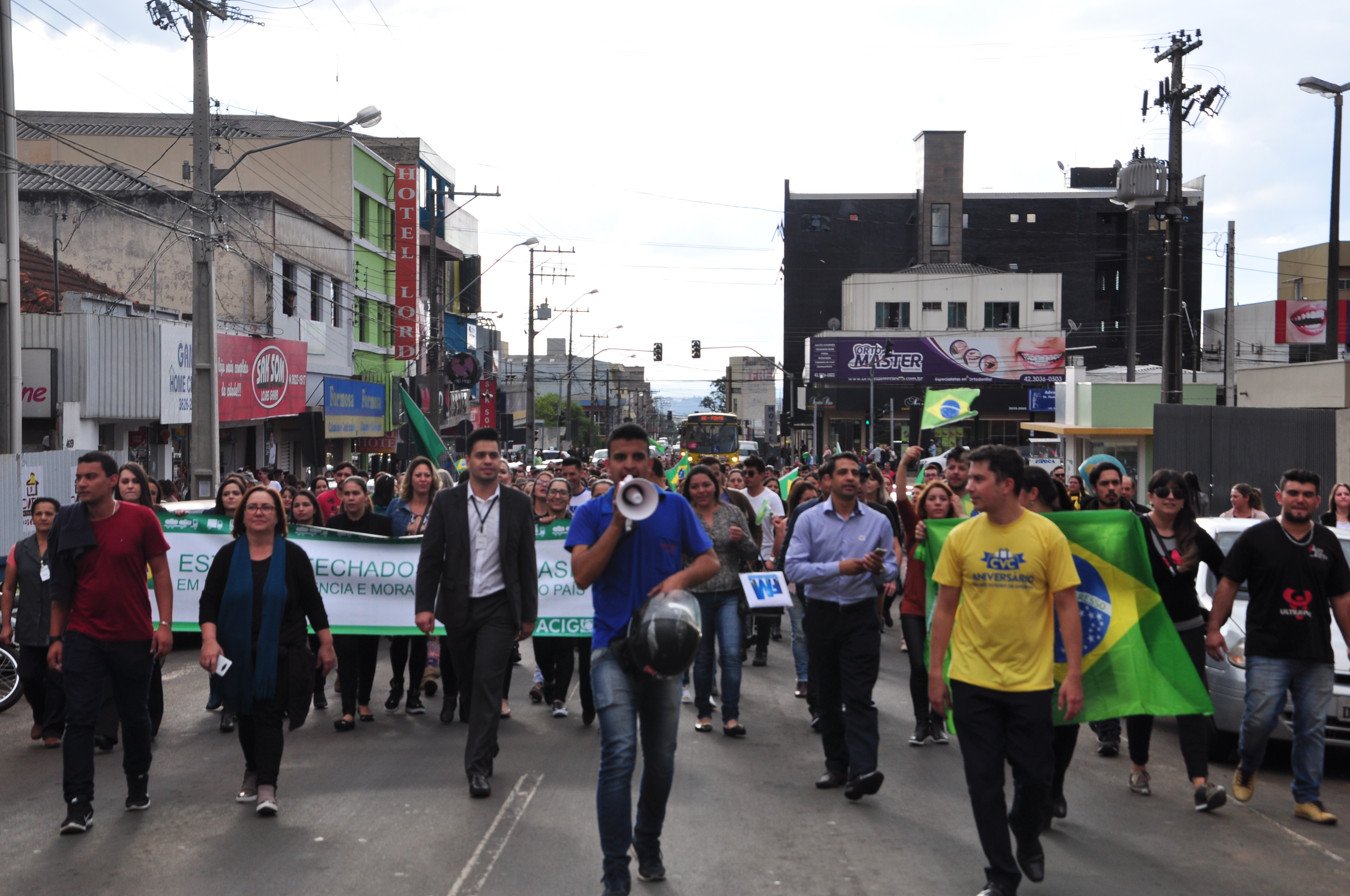 Ao som de “fecha, fecha”, os comerciantes buscavam o fechamento do maior número possível de estabelecimentos, como forma de apoio e fortalecimento à greve dos caminhoneiros.  O hino nacional e menções ao “vem pra rua” também marcaram o percurso da classe pelo centro. De acordo com o presidente da ACIG, Rudival Kasczuk, a adesão ao movimento evidencia a força da paralisação.  “Esse número de pessoas participando mostra o apoio e a força do guarapuavano, que entendeu nossa proposta e também busca integrar a transformação do país”, reiterou.