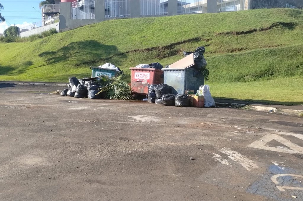 Nas fotos, é possível visualizar diversos sacos de lixo para fora das caçambas, que coletam vidro, plástico, papel e papelão. Um dos moradores afirmou que esse material fica ao ar livre, sem coleta, por até quatro dias. E quando há a retirada, ainda sobra lixo no chão.