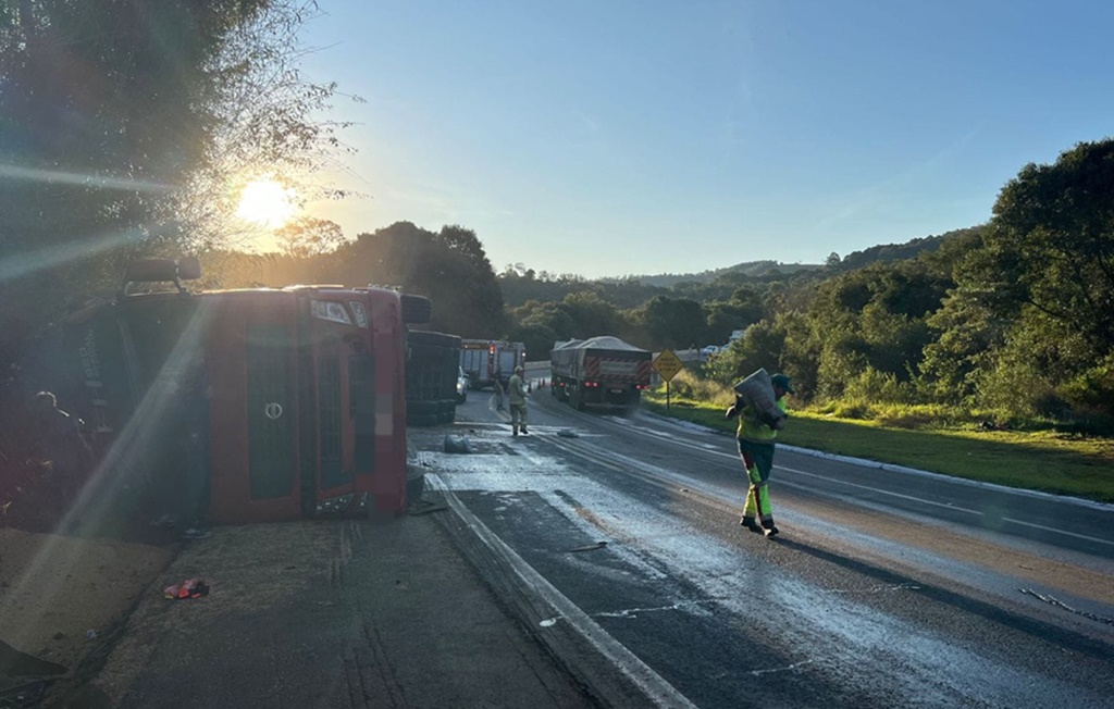 A Polícia Rodoviária Federal (PRF) atendeu um acidente do tipo tombamento na BR-277 em Nova Laranjeiras. O acidente desse domingo (2) ocorreu no Km 473 da rodovia e envolveu um conjunto transportador tracionado por unidade tratora (carreta) com placas de Marechal Cândido Rondon.