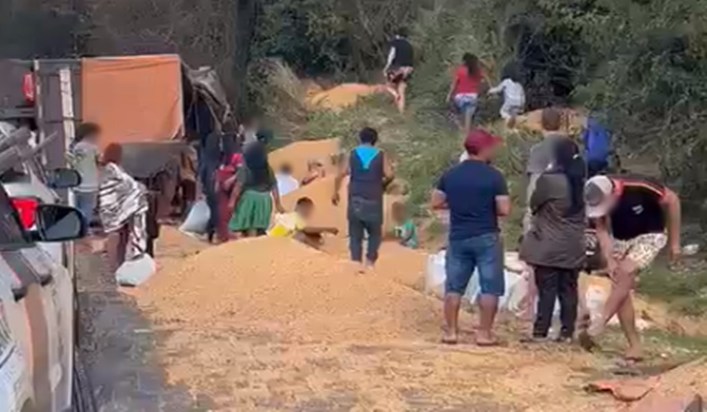 A carreta estava carregada com 50 toneladas de soja em grãos. Conforme a PRF, a carga derramada sobre o acostamento da via acabou saqueada por moradores da Região, que não se intimidaram nem com a presença da polícia. Entre eles, adultos e crianças.