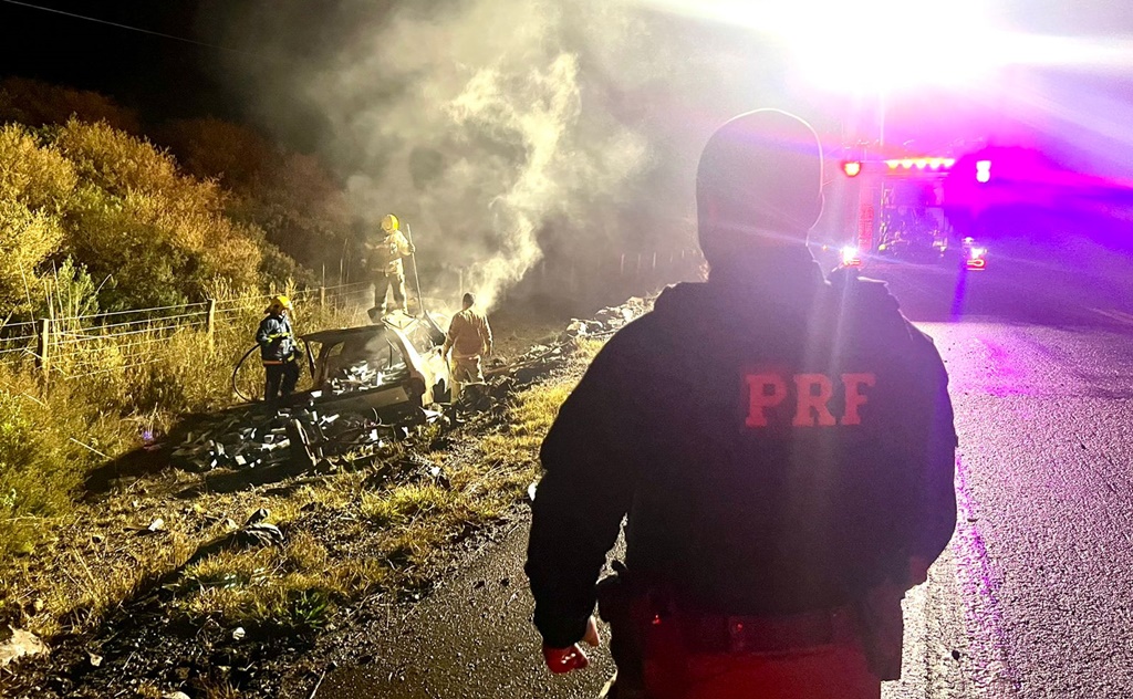 A PRF não o localizou. O Corpo de Bombeiros deu apoio para apagar o fogo que consumiu praticamente todo o veículo. Diante dos fatos, os policiais encaminharam a carcaça da picape e os cigarros que restaram no veículo à Receita Federal para os procedimentos cabíveis.