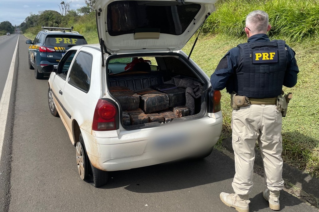 Motorista foge, mas PRF apreende carro com 238 quilos de maconha