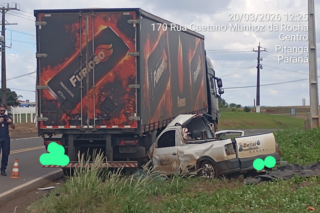 Conforme o relatório, a Saveiro seguia no sentido Pitanga – Manoel Ribas quando o condutor perdeu o controle da direção e invadiu a pista contrária, colidindo frontalmente com o caminhão, que trafegava no sentido oposto.