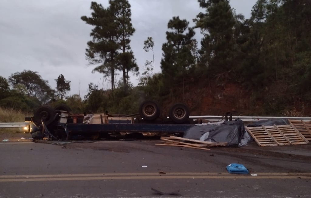 Motorista morre após tombamento de caminhão na PR-170 em Pinhão