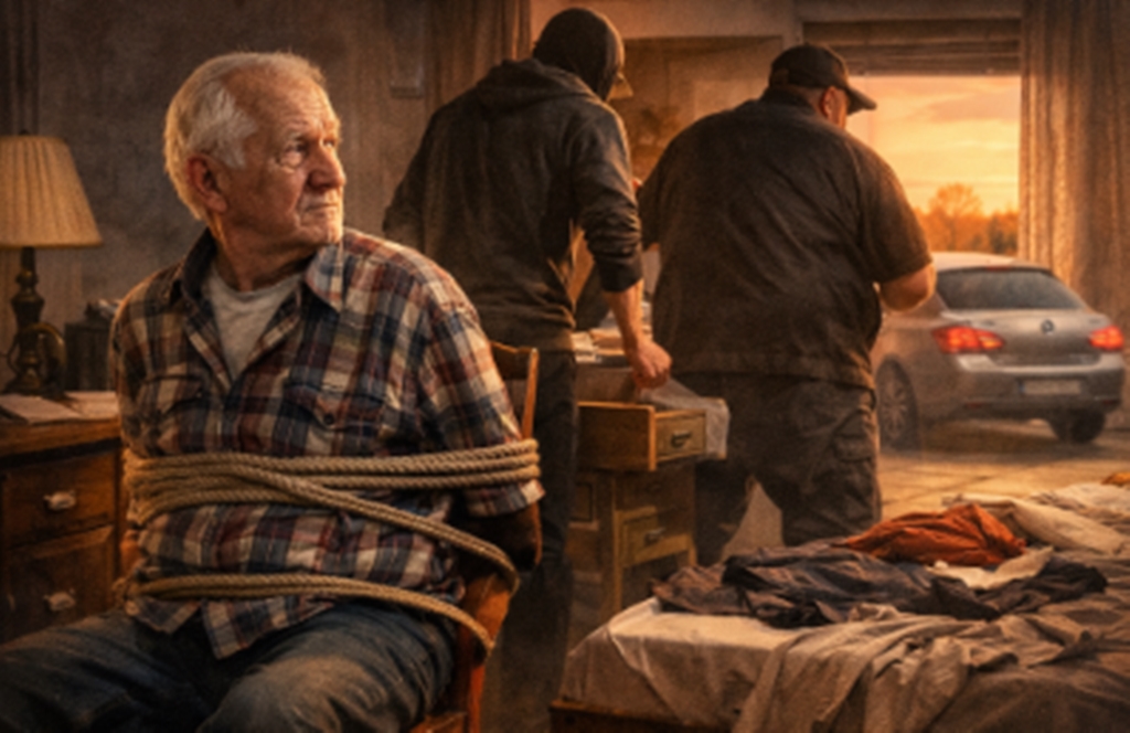 Idoso amarrado (Foto: IA)