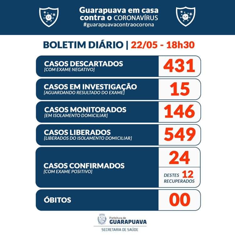 As mortes registradas no informe desta semana ocorreram entre 26 de janeiro e 17 de maio. São 23 homens e 24 mulheres com idades entre 22 anos e 98 anos. As vítimas são moradoras em 19 municípios: Arapoti (1), Ponta Grossa (3), Capanema (1) e Dois Vizinhos (1). Assim como em Francisco Beltrão (3), Marmeleiro (2), Pranchita (2) e Santo Antônio do Sudoeste (2). Incluindo também Cascavel (8), Santa Tereza do Oeste (1), Iretama (3), Moreira Sales (1), Arapongas (4), Londrina (6), Assis Chateaubriand (1), Marechal Cândido Rondon (1), São Pedro do Iguaçu (1), Toledo (5) e Tupãssi (1). Desse total, 31 pessoas apresentavam comorbidades.