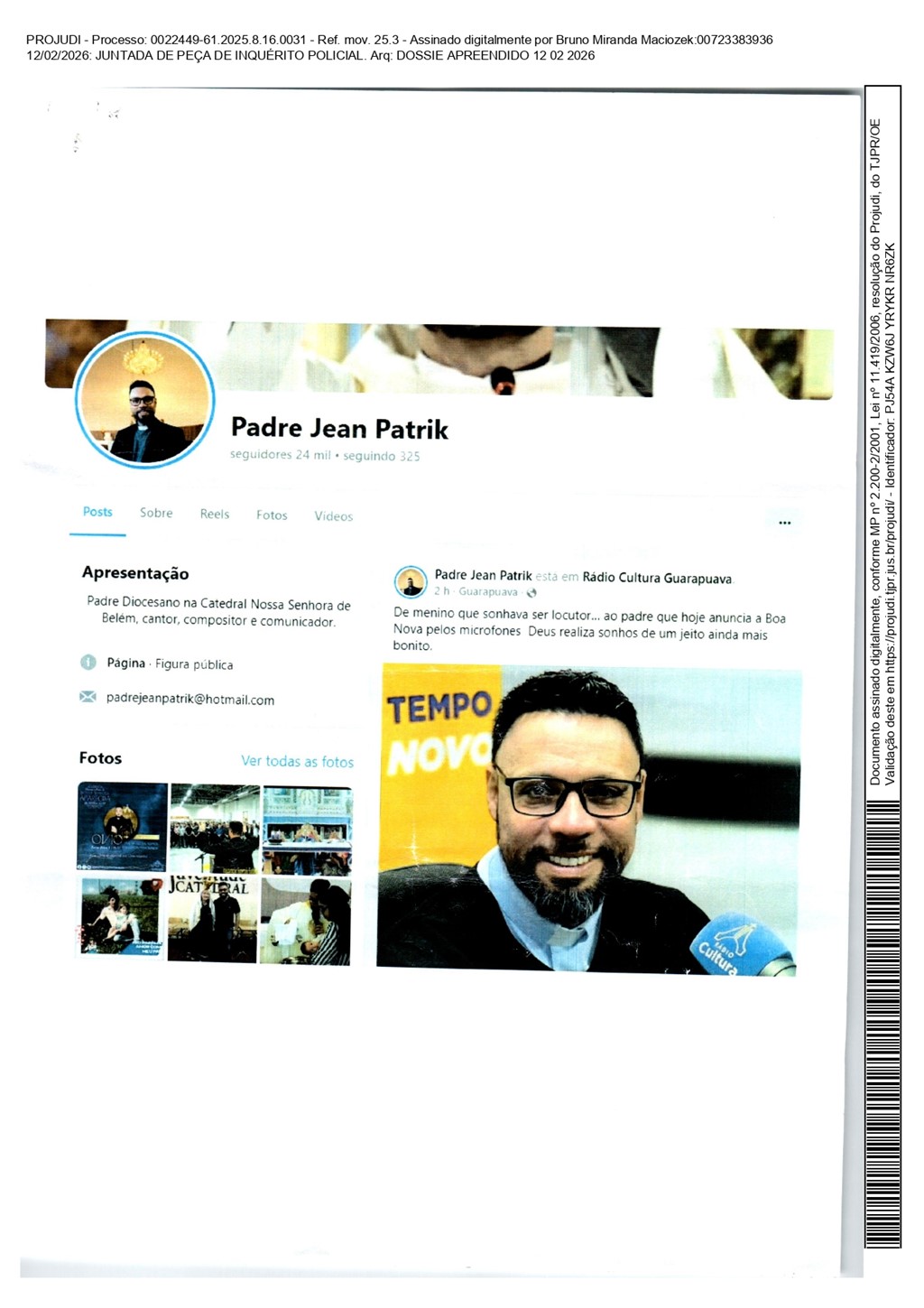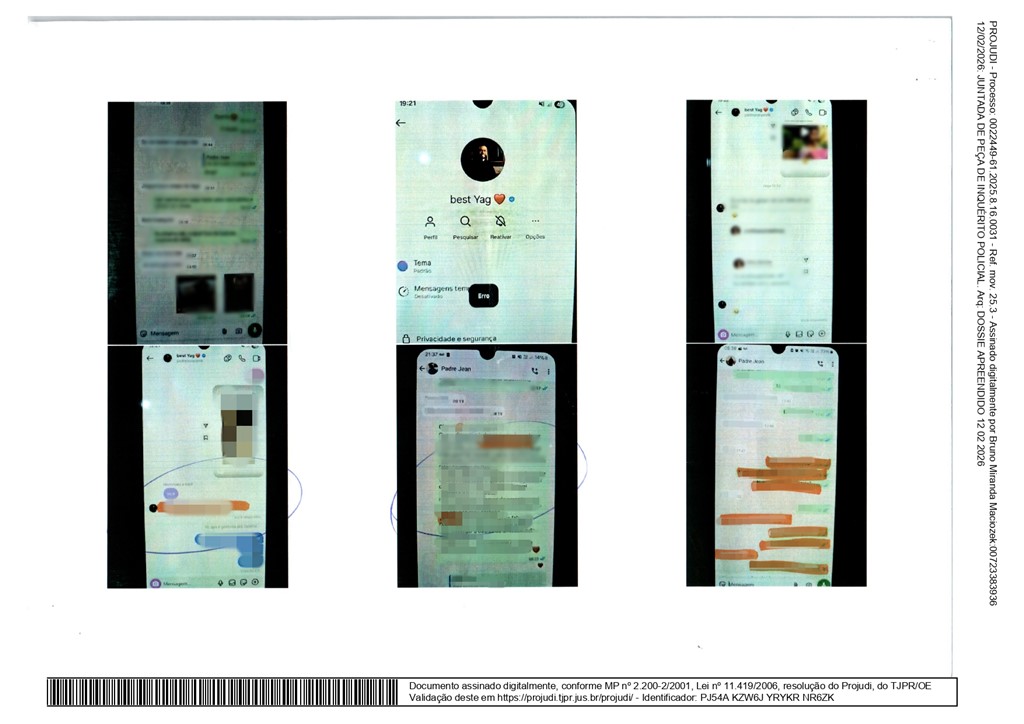 O padre Jean Patrik se pronunciou pela primeira vez após o vazamento de um dossiê que integra um inquérito policial em andamento e que expõe conversas privadas atribuídas a ele. O documento, juntado ao processo no dia 12 de fevereiro, reúne 12 páginas com capturas de telas de diálogos por aplicativo de mensagens e registros de redes sociais.