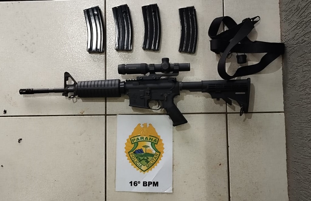 Além da droga, a PM encontrou uma arma de fogo de uso restrito, do tipo carabina calibre 5.56 milímetros, quatro carregadores e acessórios