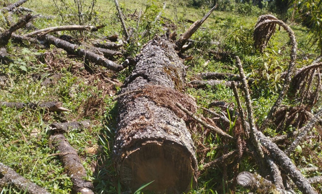 Na mesma comunidade, a polícia constatou o desmate de 3,08 hectares de vegetação nativa com corte seletivo de espécies como bracatinga, canela, pessegueiro bravo entre outras, também contendo espécies especialmente protegidas como o pinheiro araucária e xaxim.