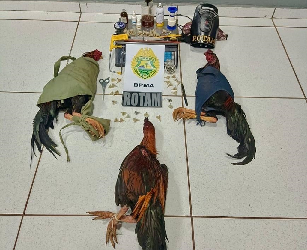 Com apoio do Pleotão de Choque, a Polícia Ambiental se dirigiu até uma chácara na Localidade de Rincão do Bicho, no interior do município. No local as equipes abordaram oito homens que tentaram fugir pela mata. Foram apreendidos 16 galos utilizados na prática de rinhas, além de materiais como biqueiras de metal, esporas e diversos medicamentos de uso veterinário.
