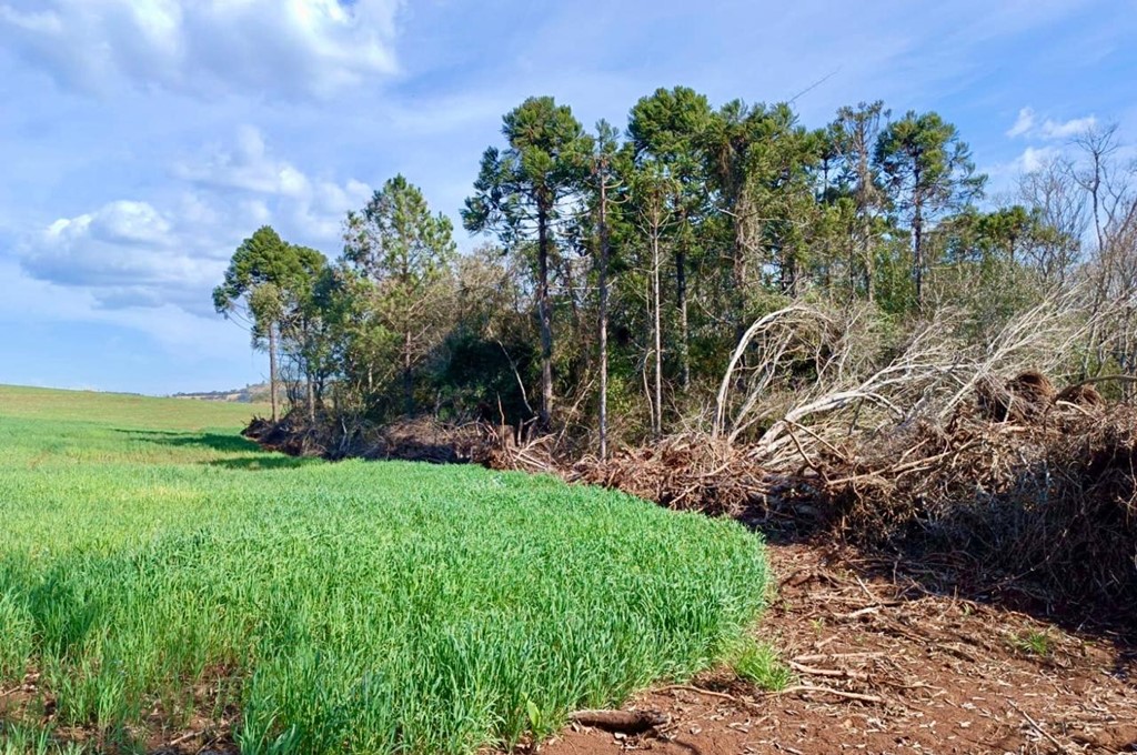 Uma denúncia levou a Polícia Militar Ambiental a uma propriedade no distrito de Faxinal Grande, em Laranjeiras do Sul, onde foi constatado o desmatamento ilegal de 10,8 hectares de vegetação nativa. A intervenção afetou diretamente seis nascentes, consideradas áreas de preservação permanente, e também resultou na derrubada de pinheiros araucárias, uma espécie protegida por legislação ambiental.
