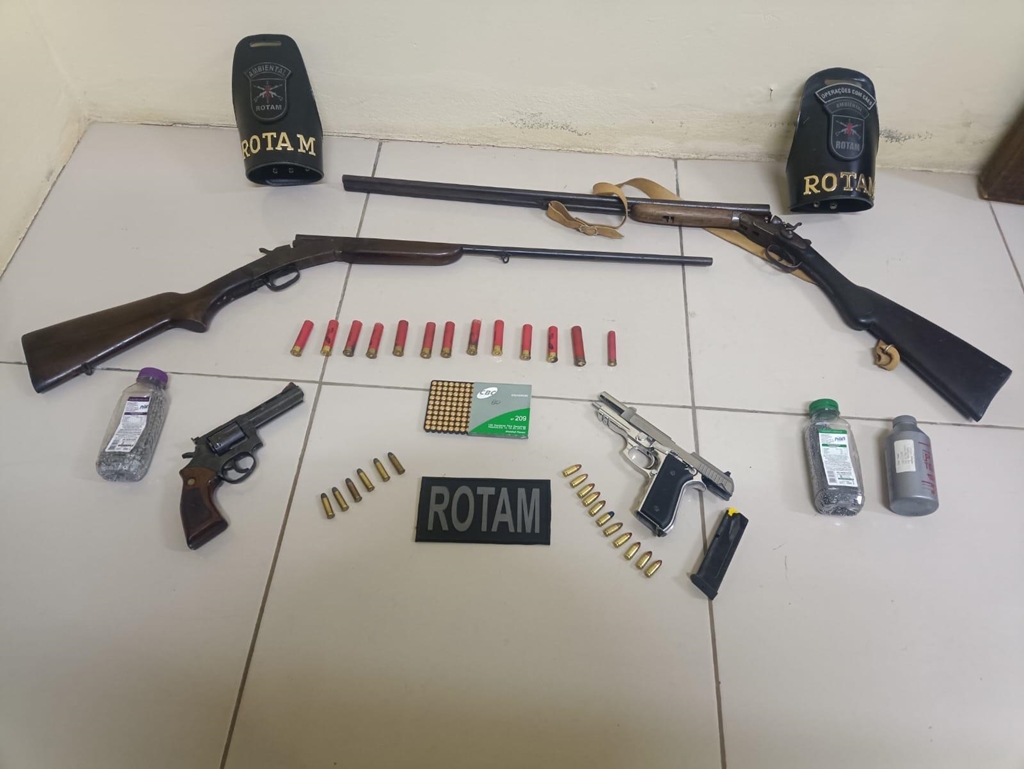 Durante a mesma operação, houve constatação de outras infrações. Assim sendo, um homem tentou se livrar de uma pistola calibre nove milímetros 11 munições ao avistar a polícia. Ele foi identificado e preso. Em revista a um veículo, foi encontrado um revólver calibre 38 com numeração suprimida. O proprietário também foi preso.