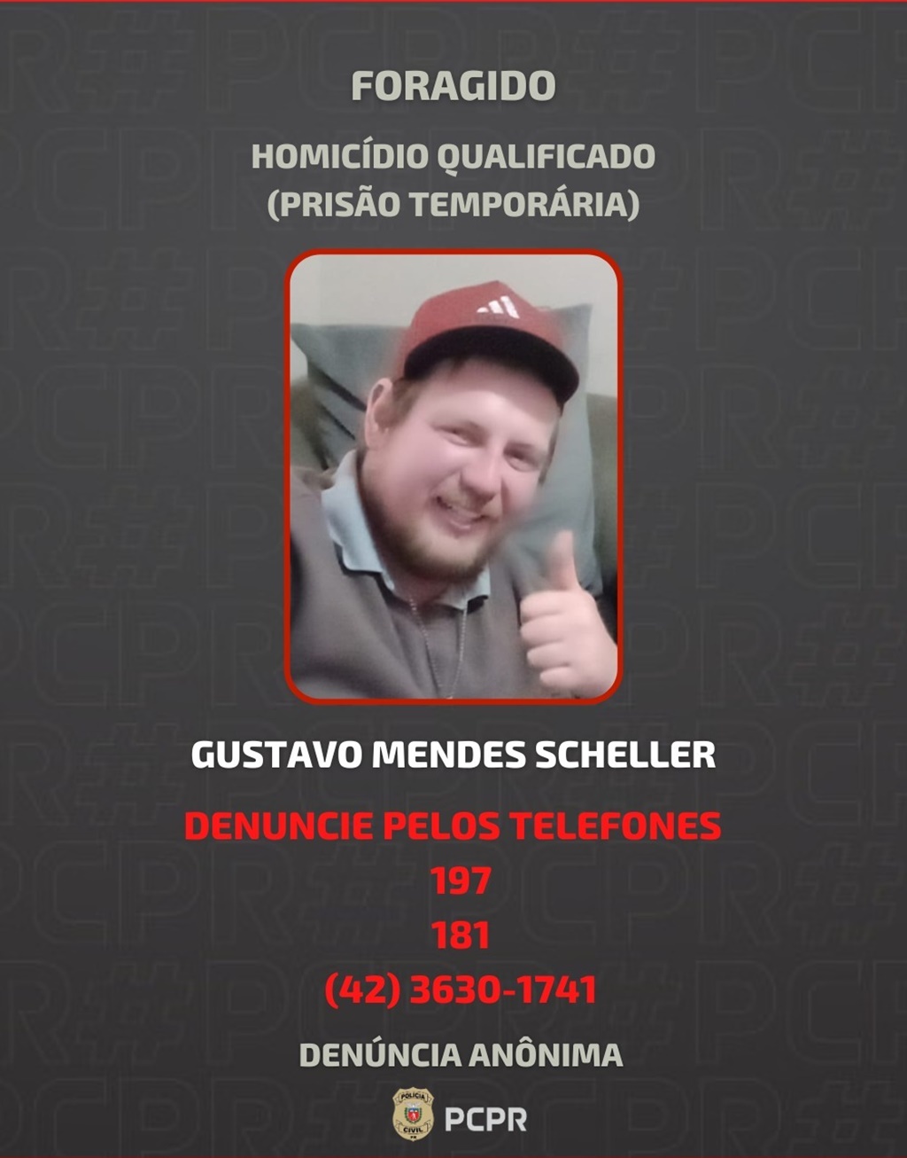 A Polícia Civil do Paraná (PCPR) pede a ajuda da população para encontrar dois homens, pai e filho, de 31 e 58 anos. Ambos encontram-se foragidos pela morte de Diego Lenon Kuss da Silva. Eles são acusados de homicídio qualificado e ocultação de cadáver em um crime ocorrido no dia 24 de agosto, no bairro Industrial, em Guarapuava.