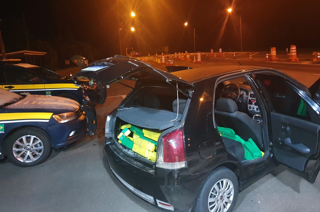 O Fiat Palio com placas de Campo Largo transportava os tabletes de maconha no porta-malas e no banco traseiro. Os dois ocupantes de 21 e 24 anos não relataram onde pegaram a maconha, nem para onde levariam.