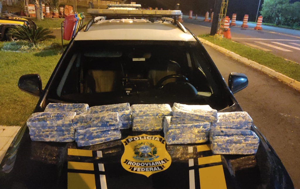 O carro fazia transporte por aplicativo e seguia de Cascavel para Brusque/SC com três ocupantes. Nas bagagens, os policiais rodoviários encontraram em uma mala, 21,84 quilos de maconha. A droga pertencia ao jovem de 23 anos.