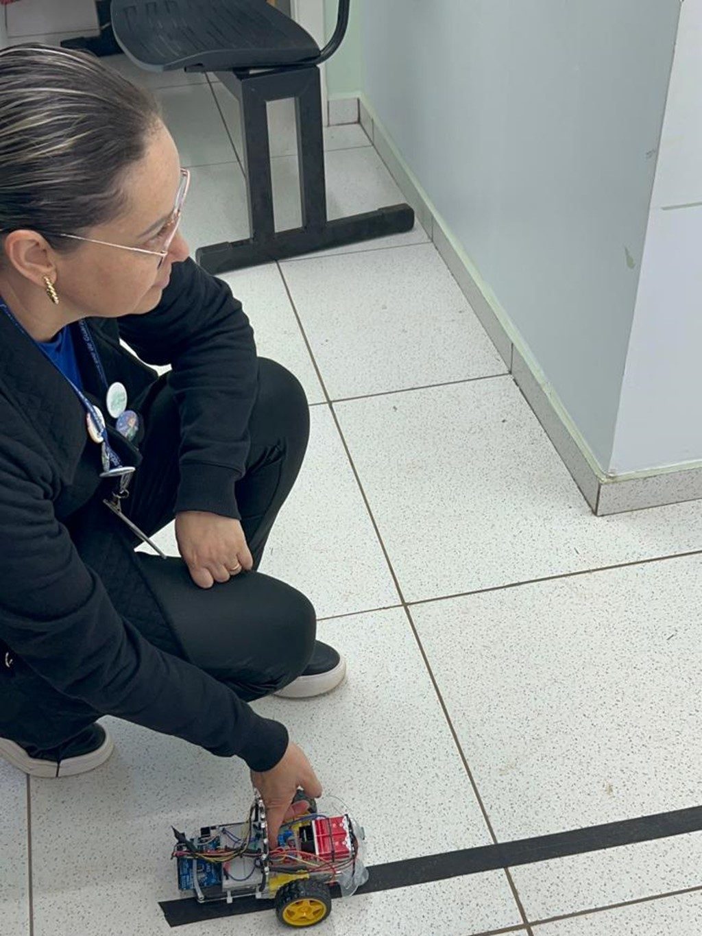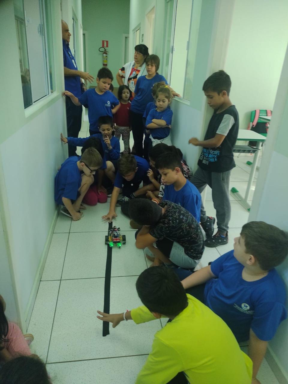 A resposta veio com a robótica. O “Robô Sinaldo” é um carrinho robótico que, acionado remotamente por celular, percorre os corredores da escola com luzes vermelhas, sinalizando visualmente a necessidade de evacuação em caso de emergência. Essa solução criativa elimina barreiras de comunicação que poderiam colocar em risco a segurança de estudantes com deficiência auditiva.