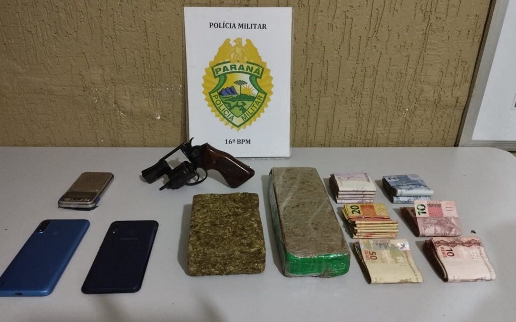 Ainda durante as buscas, a PM encontrou em uma bolsa pequena, um revólver calibre 38 Special com numeração de série raspada. Além disso, havia uma balança de precisão, mais R$ 1 mil em espécie e em uma sacola plástica, outro tablete de maconha que pesou 615 gramas.