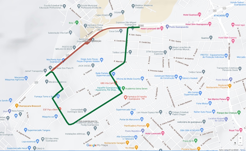• Acesso à BR-277 a partir do bairro Cidade dos Lagos: usar saída pelo Portão 02, acessando a rua João Fortkamp, que leva à rotatória localizada no km 348.